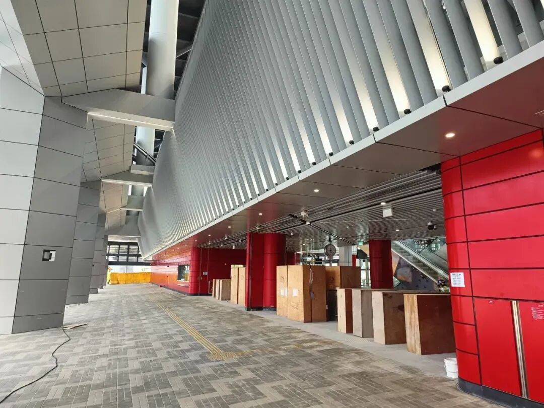 旅检大楼空间有限,为实现横琴站与横琴口岸的无缝接驳换乘,建设团队巧妙完成布置多部垂直电梯的设计方案,无障碍或携带大件行李的乘客可从轻轨大堂直达口岸出、入境大厅及交通枢纽平台,高效、便捷、舒适的人性化设计获得了乘客的点赞认可。