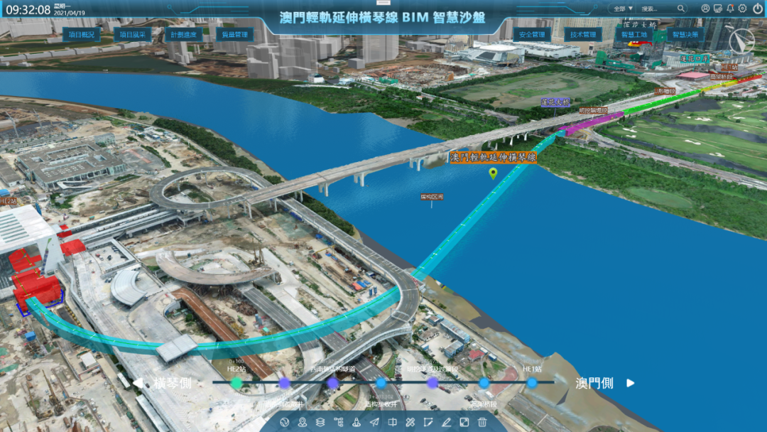 建设团队为本项目打造了智慧工地建管平台,为包括盾构施工在内的全方位建设过程提供了数字化智慧管理服务。牵头完成的《基于BIM的智能设计建造一体化在首条跨境轨道交通澳门轻轨延伸横琴线中的应用》荣获第四届“联盟杯”铁路工程BIM应用大赛综合工程项目BIM应用多阶段组一等奖。