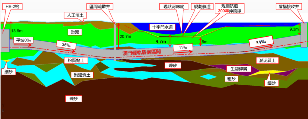 澳门轻轨横琴线是澳门特区政府在轨道交通建设上首次采用盾构穿海隧道施工的项目。隧道施工是本项目的控制性工程。针对盾构隧道区间8米级全国最小转弯半径210米、“V”字形大坡度、洞身全部处于软弱地层等一系列难题,为确保盾构隧道施工安全与质量,项目团队通力配合、积极组织专家论证、创新引入双铰接设计、量身打造大直径土压平衡盾构机“澳琴1号”,配置超前地质探测、高精度气液平衡、土仓内可视化监控、盾尾间隙自动测量、盾构径向间隙补偿等智能化系统,为项目实施提供坚强技术保障。同时,项目创新应用BIM智慧工地平台系统,获得社会各界高度认可,在多领域评选中荣获奖项。
