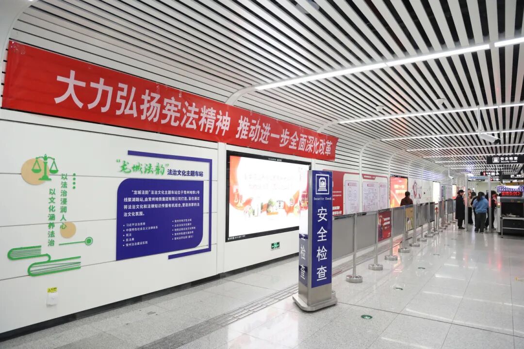 今年12月4日是第十一个国家宪法日。为深入学习宣传贯彻习近平法治思想,进一步弘扬社会主义法治精神,大力建设社会主义法治文化,在市司法局的指导下,常州地铁在地铁1号线聚湖路站打造“龙城法韵”法治文化主题车站。