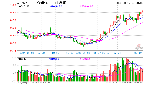3月19日港股通医药ETF(159776)份额减少100.00万份,最新份额1.45亿份,最新规模1.40亿元